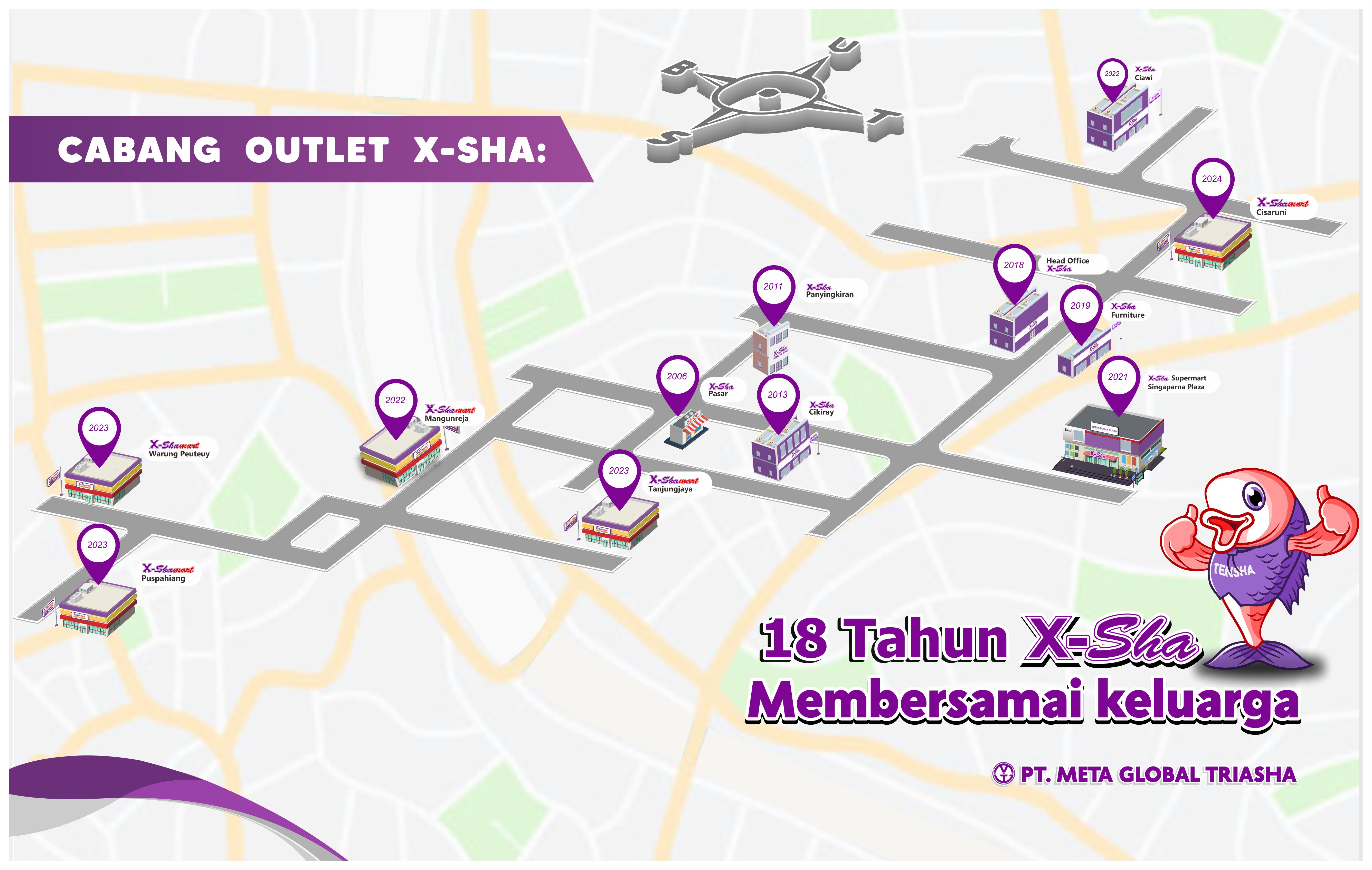 X-Sha merupakan perusahaan lokal dari Tasikmalaya Jawa Barat yang bergerak di bidang retail fashion, home supplies dan FMCG yang ada dibawah naungan PT. META GLOBAL TRIASHA. Saat ini X-sha menjadi salah satu perusahaan yang memiliki multi segmen pasar, yang mana dengan ini X-Sha dapat hadir untuk setiap kalangan masyarakat khususnya di Tasikmalaya. Didirikan sejak Tahun 2006, kini X-Sha telah memiliki 9 store offline yang tersebar di Kec. Singaparna, Kec. Mangunreja, Kec. Salawu, Kec. Puspahiang Kec. Padakembang, Kec. Salawu, Kec. Ciawi Tasikmalaya, serta 1 online store Mexshamall.